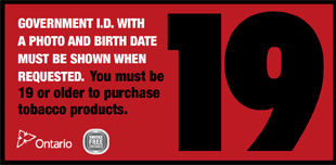 Customers must be at least 19 years of age to be sold Tobacco products.